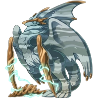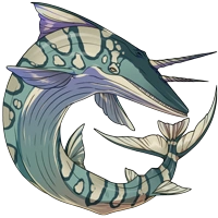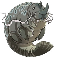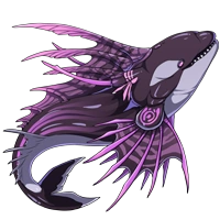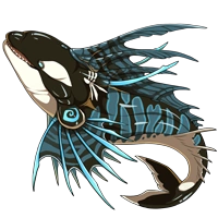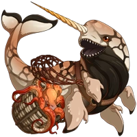 | Bits of ocean debris that are incorrectly filtered build up inside of these bicorn whales. Upon discovering a carcass, dragons may find a treasure trove of resources inside! (Colored by Frye.)