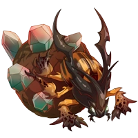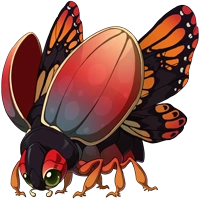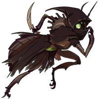 | In the wild, a Sovereign's chitinous prongs are used to vie for leadership of the hive's migration. Their vibrant colors often make them the prized jewel of an insect collector's hoard.