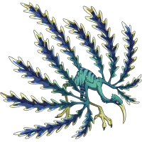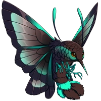 | One of the many mutations that this webwing has undergone has left it with luxurious plumage.