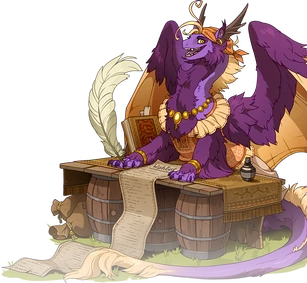 Crim is a female Fire[1] Tundra Dragon in Flight Rising. She maintains a cart at the Trading Post, where she collects all manner of items from players in exchange for treasure, of which she seems to have an unlimited amount.